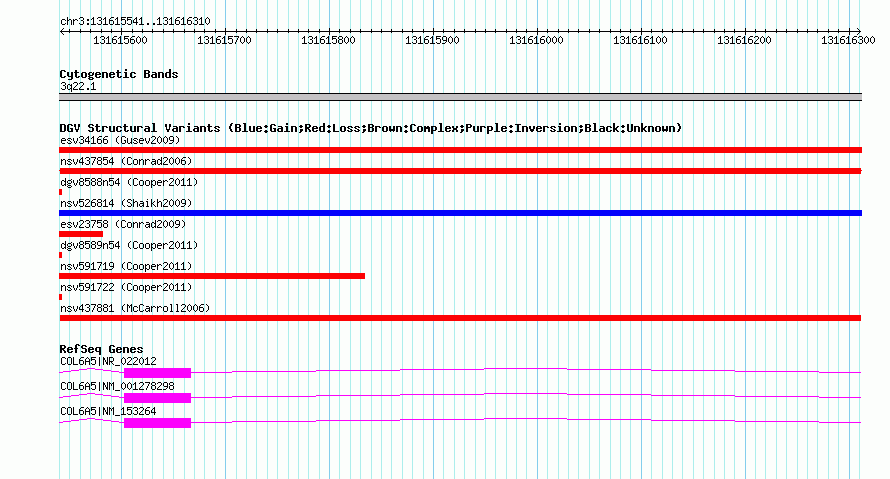 Variant DetailsVariant: nsv437881| Internal ID | 15388231 | | Landmark | | | Location Information | | | Cytoband | 3q22.1 | | Allele length | | Assembly | Allele length | | hg38 | 770 | | hg19 | 770 | | hg18 | 770 | | hg16 | 770 |