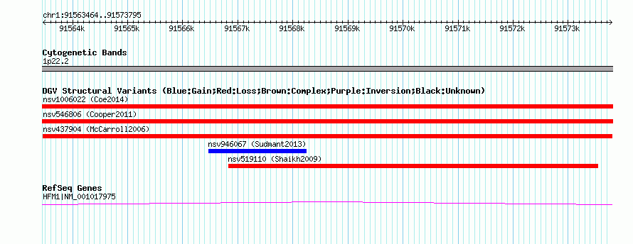 Variant DetailsVariant: nsv437904| Internal ID | 15388254 | | Landmark | | | Location Information | | | Cytoband | 1p22.2 | | Allele length | | Assembly | Allele length | | hg38 | 10332 | | hg19 | 10332 | | hg18 | 10332 | | hg16 | 10332 |