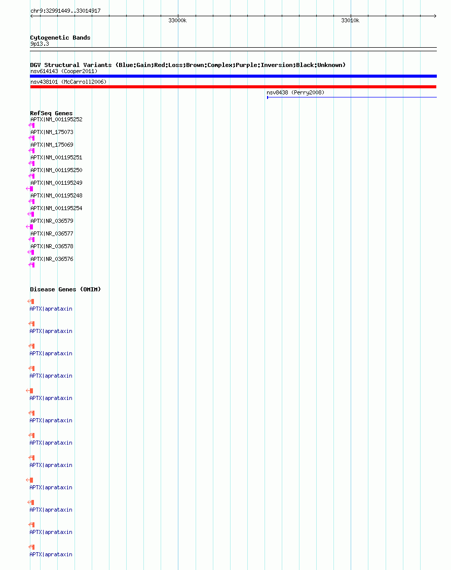 Variant DetailsVariant: nsv438101| Internal ID | 15387912 | | Landmark | | | Location Information | | | Cytoband | 9p13.3 | | Allele length | | Assembly | Allele length | | hg38 | 23469 | | hg19 | 23469 | | hg18 | 23469 | | hg16 | 23469 |