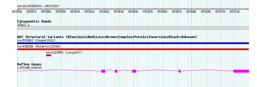 Variant DetailsVariant: nsv438288| Internal ID | 15041518 | | Landmark | | | Location Information | | | Cytoband | 18q21.1 | | Allele length | | Assembly | Allele length | | hg38 | 15908 | | hg19 | 15908 | | hg18 | 15908 | | hg16 | 15908 |