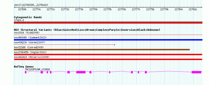 Variant DetailsVariant: nsv442414 | Internal ID | 15501133 | | Landmark | | | Location Information | | | Cytoband | 17q11.1 | | Allele length | | Assembly | Allele length | | hg38 | 13222 | | hg19 | 13222 | | hg18 | 13222 | | hg17 | 13222 |