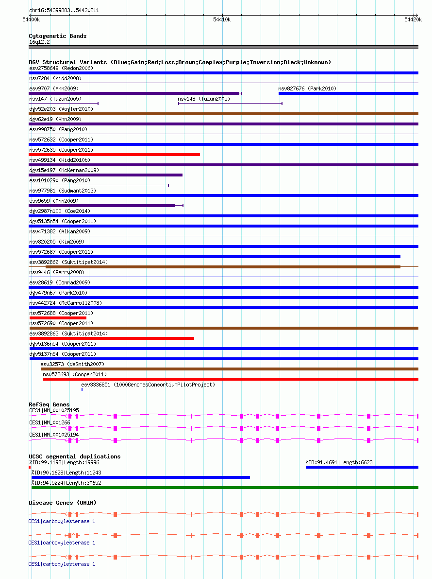 | | Variant Type | CNV gain | | Copy Number | | | Allele State | | | Allele Origin | | | Probe Count | | | Validation Flag | | | Merged Status | M | | Merged Variants | | | Supporting Variants | nssv1649543, nssv1649554, nssv1649545, nssv1649563, nssv1649522, nssv1649573, nssv1649514, nssv1649542, nssv1649558, nssv1649523, nssv1649581, nssv1649576, nssv1649575, nssv1649557, nssv1649577, nssv1649561, nssv1649548, nssv1649553, nssv1649560, nssv1649546, nssv1649516, nssv1649566, nssv1649533, nssv1649568, nssv1649518, nssv1649571, nssv1649567, nssv1649520, nssv1649564, nssv1649551, nssv1649538, nssv1649536, nssv1649586, nssv1649578, nssv1649528, nssv1649584, nssv1649517, nssv1649513, nssv1649572, nssv1649525, nssv1649535, nssv1649552, nssv1649530, nssv1649544, nssv1649583, nssv1649539, nssv1649580, nssv1649512, nssv1649537, nssv1649529, nssv1649534, nssv1649519, nssv1649556, nssv1649574, nssv1649531, nssv1649550, nssv1649579, nssv1649585, nssv1649524, nssv1649569, nssv1649582, nssv1649562, nssv1649587, nssv1649527, nssv1649559, nssv1649532, nssv1649547, nssv1649515, nssv1649588, nssv1649521, nssv1649526, nssv1649555, nssv1649565, nssv1649541, nssv1649540, nssv1649549, nssv1649570 | | Samples | NA18998, NA19222, NA11830, NA18621, NA18947, NA11995, NA18592, NA18980, NA18561, NA18999, NA18603, NA12248, NA12146, NA12750, NA12155, NA18967, NA18563, NA19005, NA10835, NA18635, NA18547, NA18960, NA18942, NA07048, NA18571, NA12762, NA06993, NA18949, NA12005, NA18970, NA12044, NA18966, NA18990, NA10855, NA10839, NA18973, NA12760, NA10863, NA18515, NA18991, NA18529, NA18637, NA18579, NA18572, NA18976, NA12234, NA18537, NA18566, NA18573, NA12249, NA18532, NA12145, NA07345, NA06985, NA10856, NA18593, NA19012, NA18974, NA18608, NA18978, NA06991, NA18961, NA18517, NA18540, NA18564, NA18943, NA07055, NA18636, NA18609, NA18972, NA19129, NA18968, NA18622, NA18562, NA18965, NA11832, NA18620 | | Known Genes | CES1 | | Method | SNP array | | Analysis | We used two computational approaches to identify CNVs: the hidden Markov model Birdseye, and an approach based on correlation between nearby probes across a population sample. To maximize the quality of reported findings, we ran duplicate experiments in independent labs, and report the CNVs that were observed in both experiments, in the same samples and at essentially identical genomic locations. | | Platform | [GenomeWideSNP_6] Affymetrix Genome-Wide Human SNP 6.0 Array | | Comments | | | Reference | McCarroll_et_al_2008 | | Pubmed ID | 18776908 | | Accession Number(s) | nsv442724