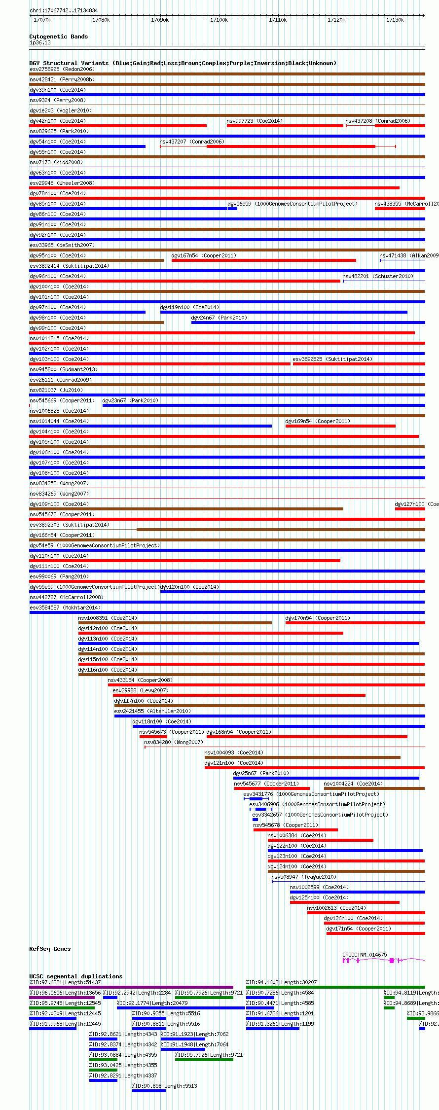 Variant DetailsVariant: nsv442727 | Internal ID | 15154760 | | Landmark | | | Location Information | | | Cytoband | 1p36.13 | | Allele length | | Assembly | Allele length | | hg38 | 67093 | | hg19 | 67093 | | hg18 | 67093 | | hg17 | 67093 |