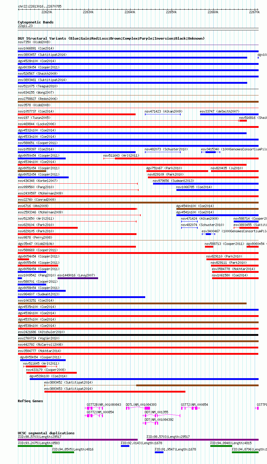 Variant DetailsVariant: nsv442792 | Internal ID | 15154825 | | Landmark | | | Location Information | | | Cytoband | 22q11.23 | | Allele length | | Assembly | Allele length | | hg38 | 57763 | | hg19 | 57770 | | hg18 | 57770 | | hg17 | 57770 |