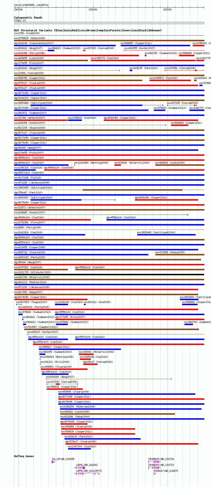 Variant DetailsVariant: nsv442794 | Internal ID | 15501513 | | Landmark | | | Location Information | | | Cytoband | 22q11.23 | | Allele length | | Assembly | Allele length | | hg38 | 254728 | | hg19 | 254728 | | hg18 | 254728 | | hg17 | 254728 |