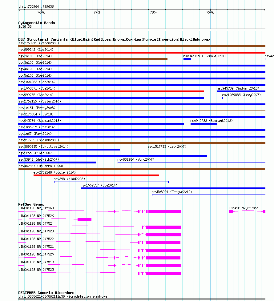 Variant DetailsVariant: nsv442837 | Internal ID | 15501556 | | Landmark | | | Location Information | | | Cytoband | 1p36.33 | | Allele length | | Assembly | Allele length | | hg38 | 43673 | | hg19 | 43673 | | hg18 | 43673 | | hg17 | 43673 |