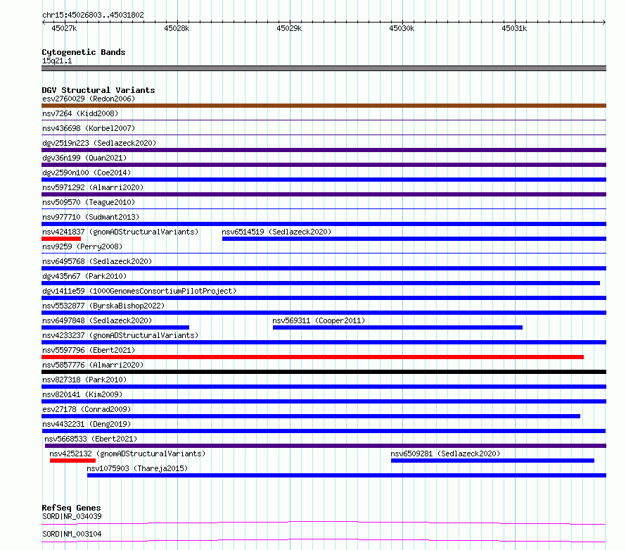 Variant DetailsVariant: nsv4432231| Internal ID | 21394233 | | Landmark | | | Location Information | | | Cytoband | 15q21.1 | | Allele length | | Assembly | Allele length | | hg38 | 5000 | | hg19 | 5000 |