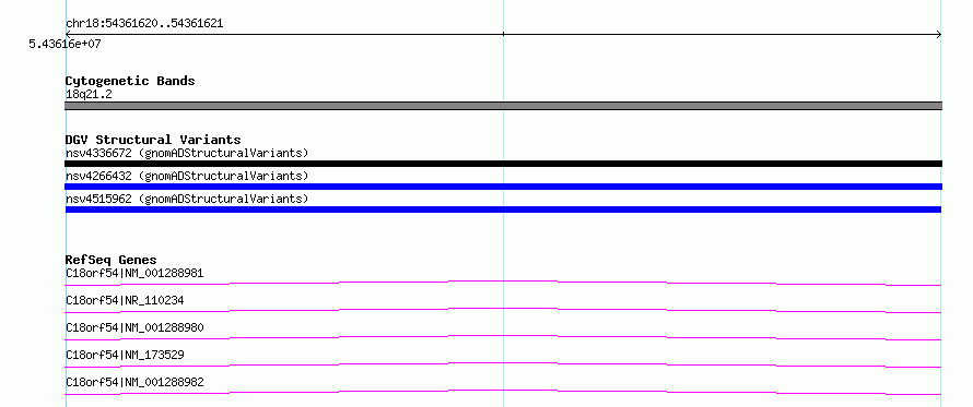 chr18:54361620..54361621hg38UCSC Ensembl