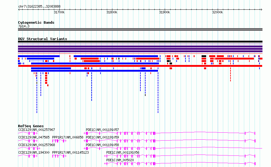 | | Variant Type | CNV deletion | | Copy Number | | | Allele State | | | Allele Origin | | | Probe Count | | | Validation Flag | | | Merged Status | M | | Merged Variants | | | Supporting Variants | nssv15920176 | | Samples | | | Known Genes | CCDC129, PDE1C, PPP1R17 | | Method | Sequencing | | Analysis | SV calls were generated using multi-algorithm consensus pipeline involving raw evidence assessment, filtering, clustering, genotyping, alternative allele structure resolution, and gene annotation. These methods are described in detail in the gnomAD-SV preprint [Collins*, Brand*, et al., bioRxiv (2019)|https://www.biorxiv.org/content/10.1101/578674v1], and are largely based on methods developed in [Werling et al., Nat. Genet. (2018)|https://www.ncbi.nlm.nih.gov/pubmed/29700473]. | | Platform | | | Comments | | | Reference | gnomAD_Structural_Variants | | Pubmed ID | 32461652 | | Accession Number(s) | nsv4524813