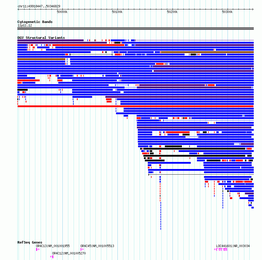 Variant DetailsVariant: nsv4528489 | Internal ID | 20258608 | | Landmark | | | Location Information | | | Cytoband | 11p11.12 | | Allele length | | Assembly | Allele length | | hg38 | 428383 | | hg19 | 366002 |
