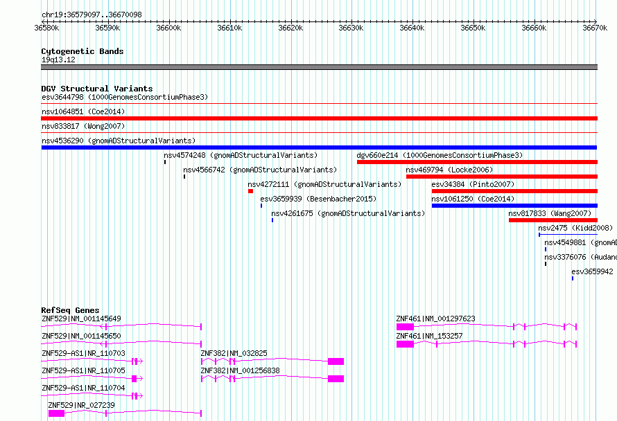 Variant DetailsVariant: nsv4536290 | Internal ID | 19919624 | | Landmark | | | Location Information | | | Cytoband | 19q13.12 | | Allele length | | Assembly | Allele length | | hg38 | 91002 | | hg19 | 91002 |
