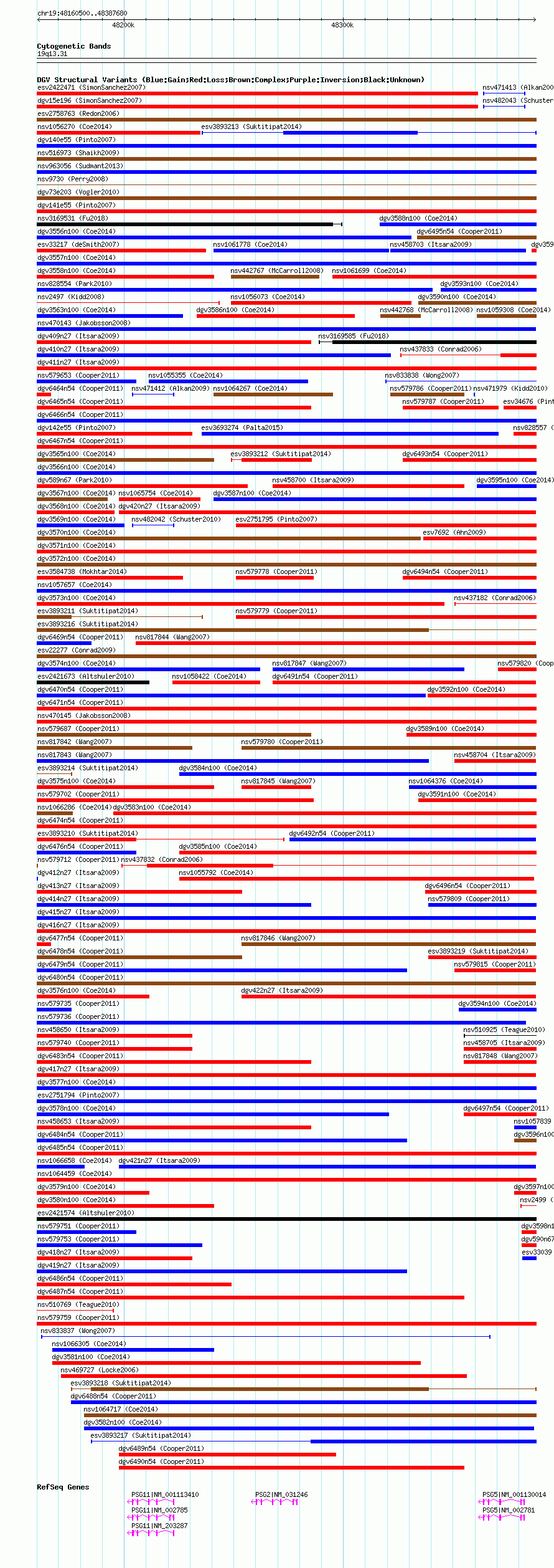 Variant DetailsVariant: nsv458682| Internal ID | 15518747 | | Landmark | | | Location Information | | | Cytoband | 19q13.31 | | Allele length | | Assembly | Allele length | | hg38 | 227181 | | hg19 | 227181 | | hg18 | 227181 | | hg17 | 227181 |