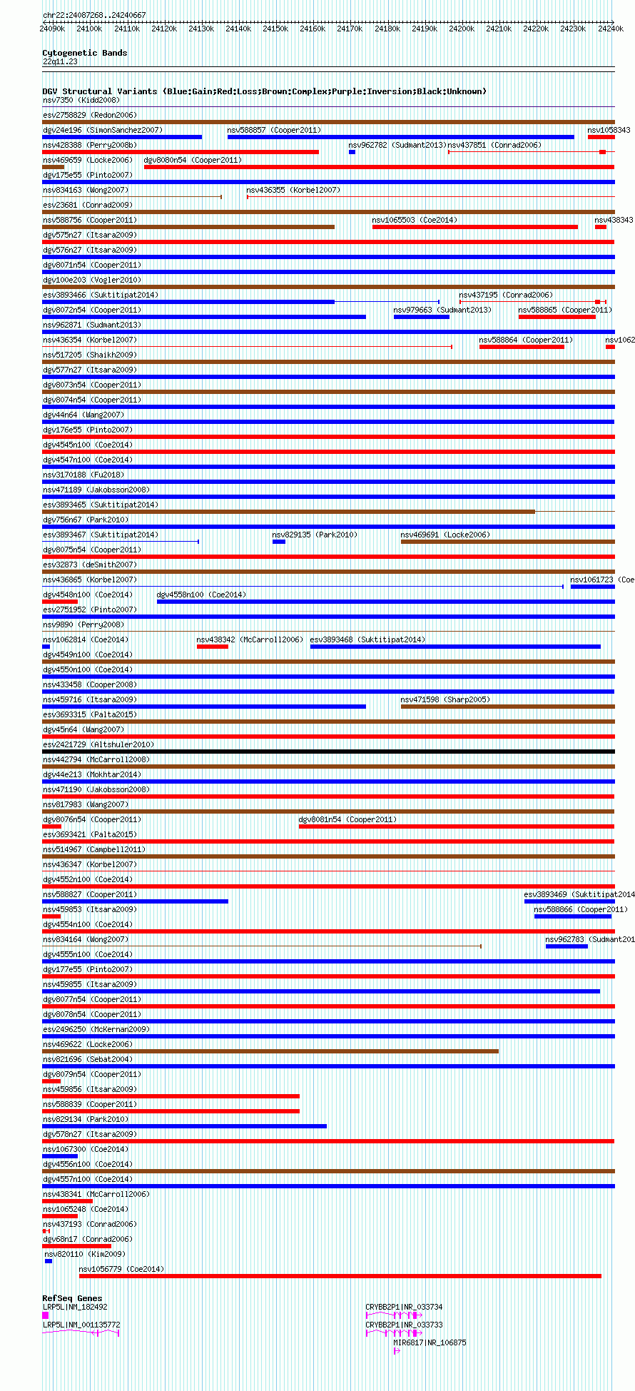 Variant DetailsVariant: nsv459858| Internal ID | 15519923 | | Landmark | | | Location Information | | | Cytoband | 22q11.23 | | Allele length | | Assembly | Allele length | | hg38 | 153400 | | hg19 | 153400 | | hg18 | 153400 | | hg17 | 153400 |