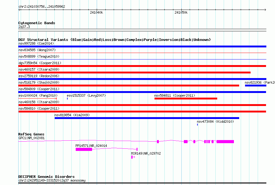 Variant DetailsVariant: nsv460158| Internal ID | 15520223 | | Landmark | | | Location Information | | | Cytoband | 2q37.3 | | Allele length | | Assembly | Allele length | | hg38 | 29207 | | hg19 | 29207 | | hg18 | 29207 | | hg17 | 29207 |