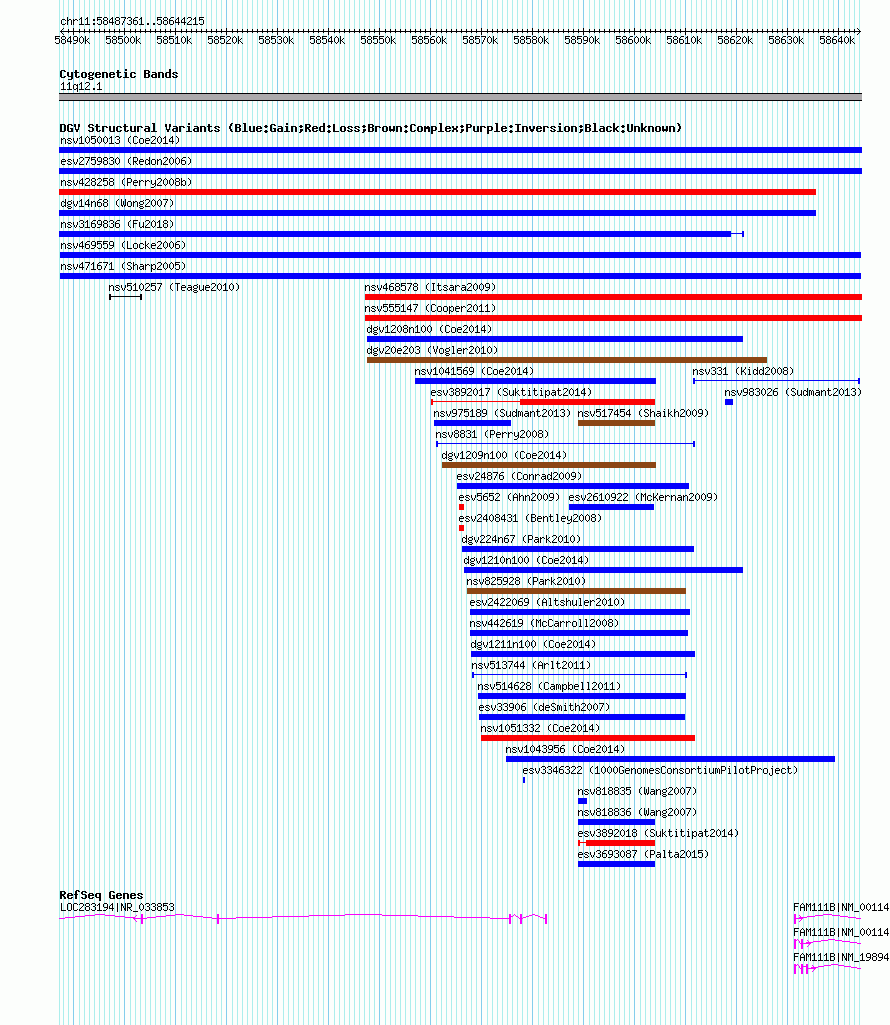 Variant DetailsVariant: nsv469559| Internal ID | 15534274 | | Landmark | | | Location Information | | | Cytoband | 11q12.1 | | Allele length | | Assembly | Allele length | | hg38 | 156855 | | hg19 | 156855 | | hg18 | 156855 | | hg16 | 156855 |