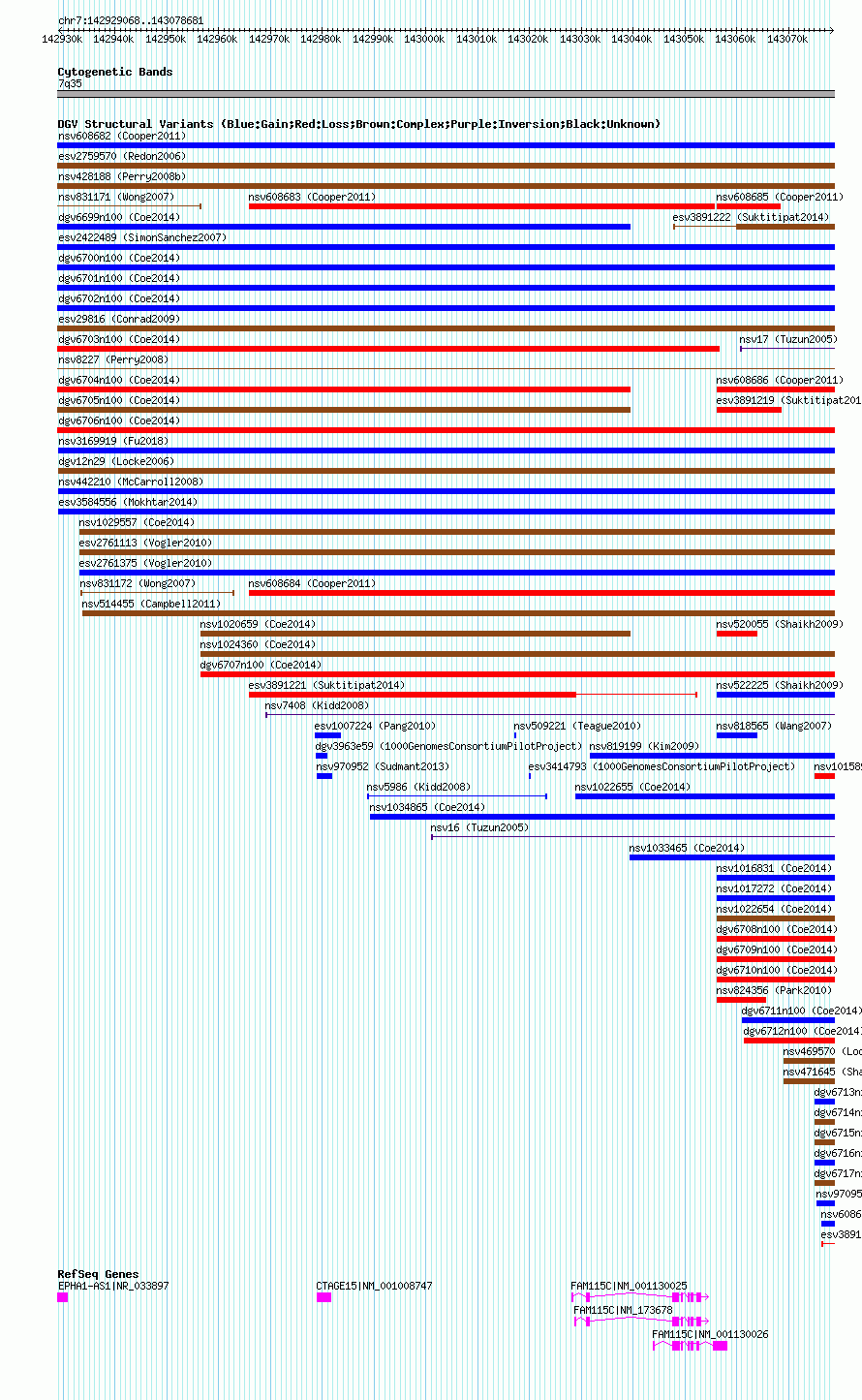 Variant DetailsVariant: nsv469589| Internal ID | 15534304 | | Landmark | | | Location Information | | | Cytoband | 7q35 | | Allele length | | Assembly | Allele length | | hg38 | 228803 | | hg19 | 228803 | | hg18 | 149614 | | hg16 | 149614 |