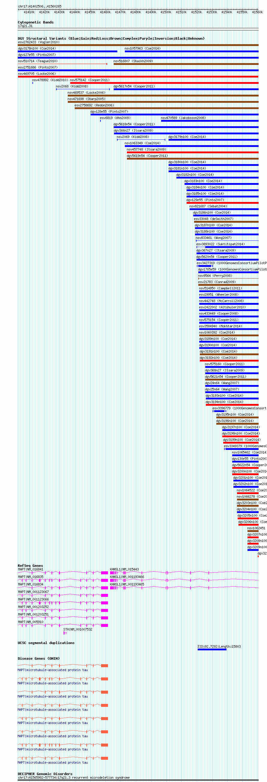 Variant DetailsVariant: nsv469705| Internal ID | 15187734 | | Landmark | | | Location Information | | | Cytoband | 17q21.31 | | Allele length | | Assembly | Allele length | | hg38 | 157818 | | hg19 | 157818 | | hg18 | 157760 | | hg16 | 157760 |