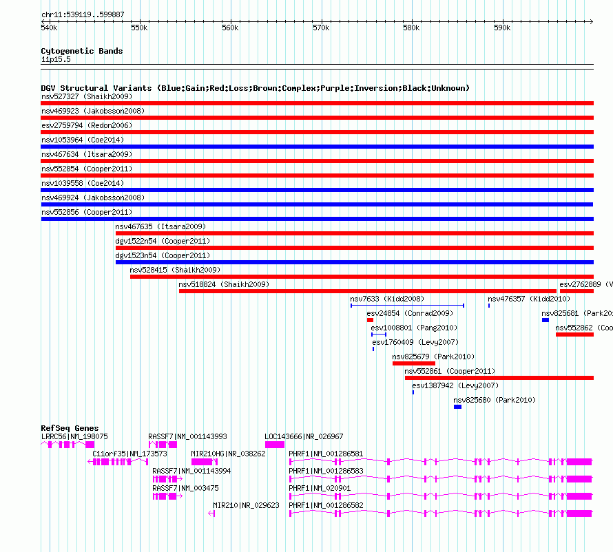 Variant DetailsVariant: nsv469924 | Internal ID | 15556483 | | Landmark | | | Location Information | | | Cytoband | 11p15.5 | | Allele length | | Assembly | Allele length | | hg38 | 60769 | | hg19 | 60769 | | hg18 | 60769 |