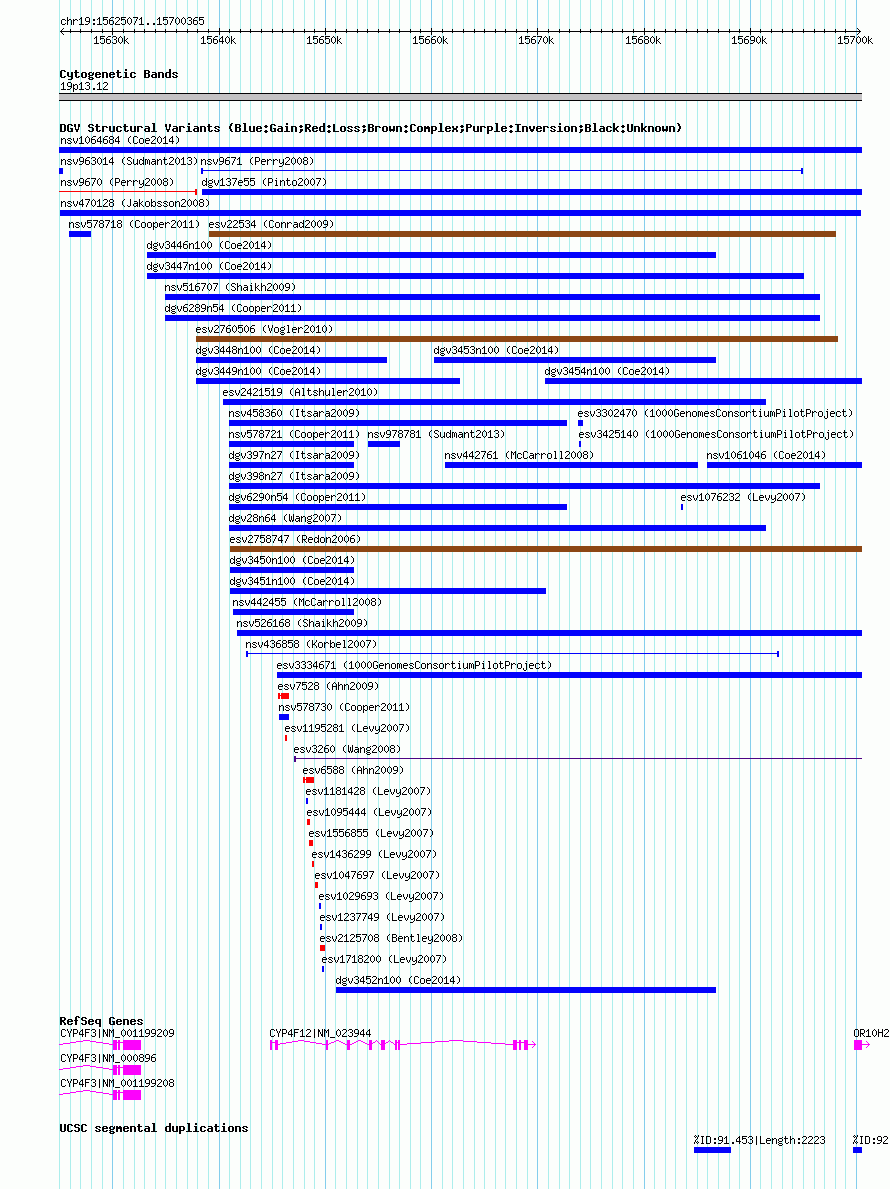 Variant DetailsVariant: nsv470128 | Internal ID | 15210001 | | Landmark | | | Location Information | | | Cytoband | 19p13.12 | | Allele length | | Assembly | Allele length | | hg38 | 75295 | | hg19 | 75295 | | hg18 | 75295 |