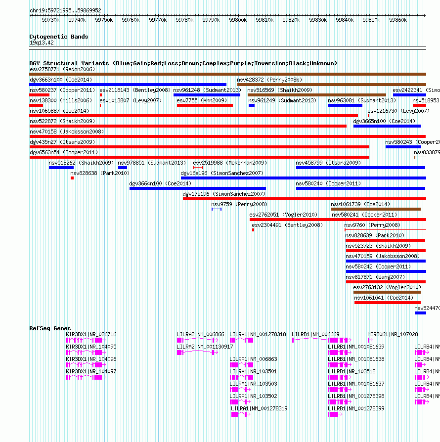 Variant DetailsVariant: nsv470158 | Internal ID | 15556717 | | Landmark | | | Location Information | | | Cytoband | 19q13.42 | | Allele length | | Assembly | Allele length | | hg38 | 147690 | | hg19 | 147958 | | hg18 | 147958 |
