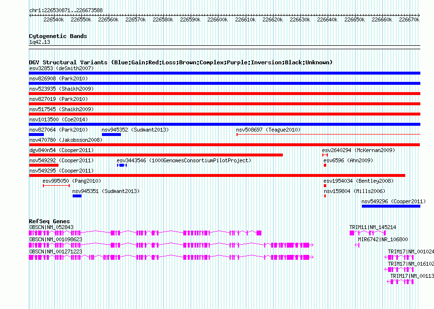 | Known Genes | MIR6742, OBSCN, TRIM11, TRIM17 |