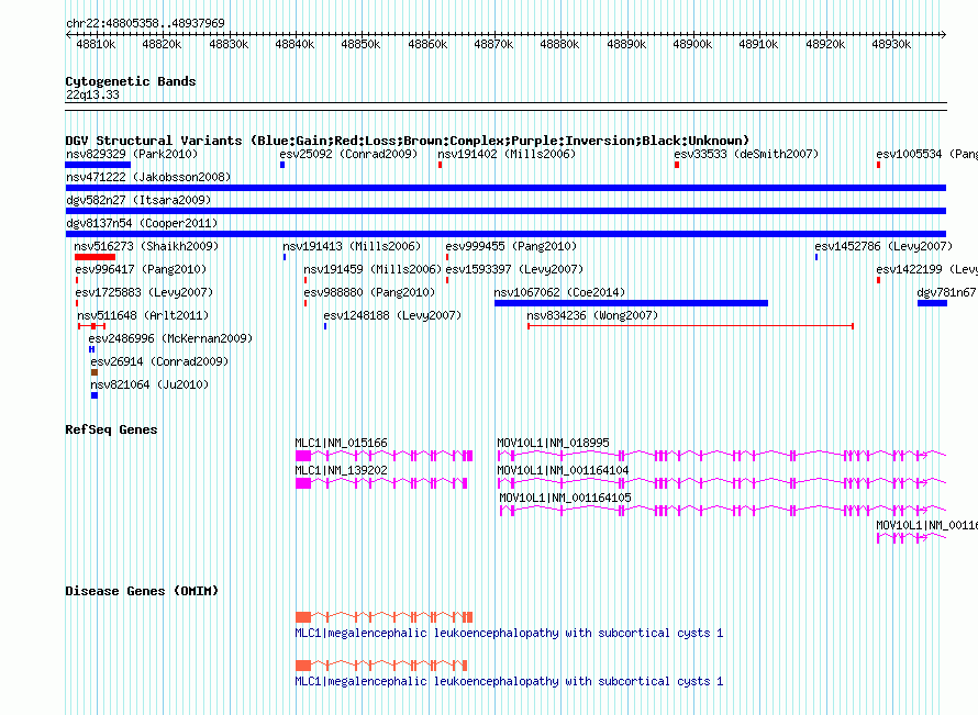 Variant DetailsVariant: nsv471222 Internal ID | 15211095 | Landmark | | Location Information | | Cytoband | 22q13.33 | Allele length | Assembly | Allele length | hg38 | 132612 | hg19 | 132612 | hg18 | 132612 |