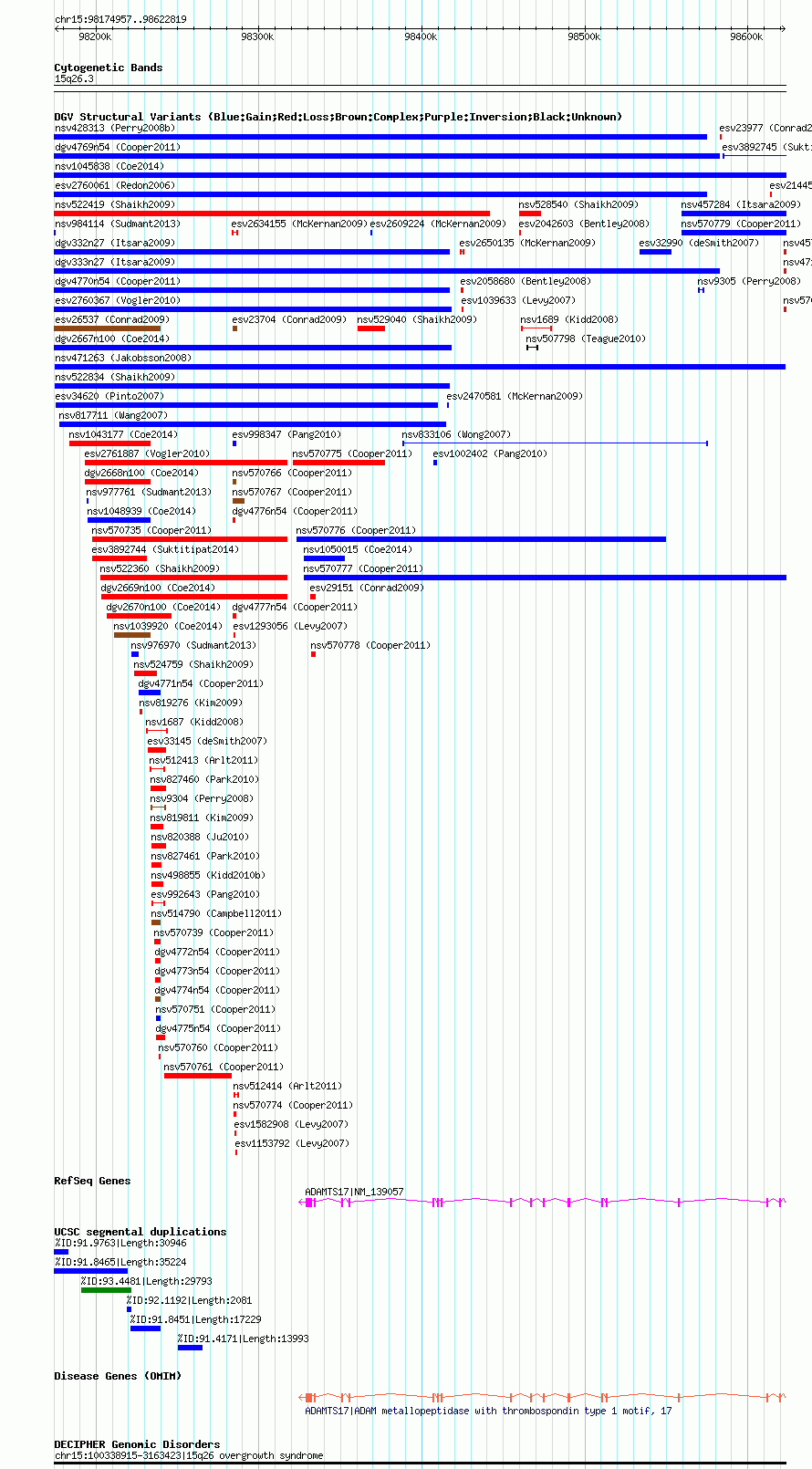 Variant DetailsVariant: nsv471263 Internal ID | 15211136 | Landmark | | Location Information | | Cytoband | 15q26.3 | Allele length | Assembly | Allele length | hg38 | 447863 | hg19 | 447863 | hg18 | 447863 |