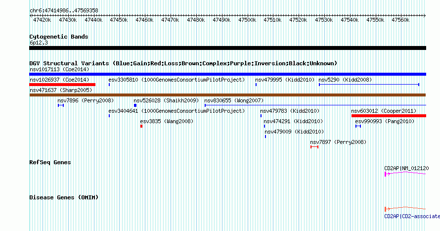 Variant DetailsVariant: nsv471637 | Internal ID | 15561151 | | Landmark | | | Location Information | | | Cytoband | 6p12.3 | | Allele length | | Assembly | Allele length | | hg38 | 154373 | | hg19 | 154373 | | hg18 | 154373 | | hg16 | 154373 |