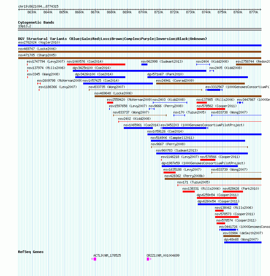 Variant DetailsVariant: nsv471705 | Internal ID | 15561100 | | Landmark | | | Location Information | | | Cytoband | 19p13.2 | | Allele length | | Assembly | Allele length | | hg38 | 152018 | | hg19 | 153222 | | hg18 | 153222 | | hg16 | 153222 |