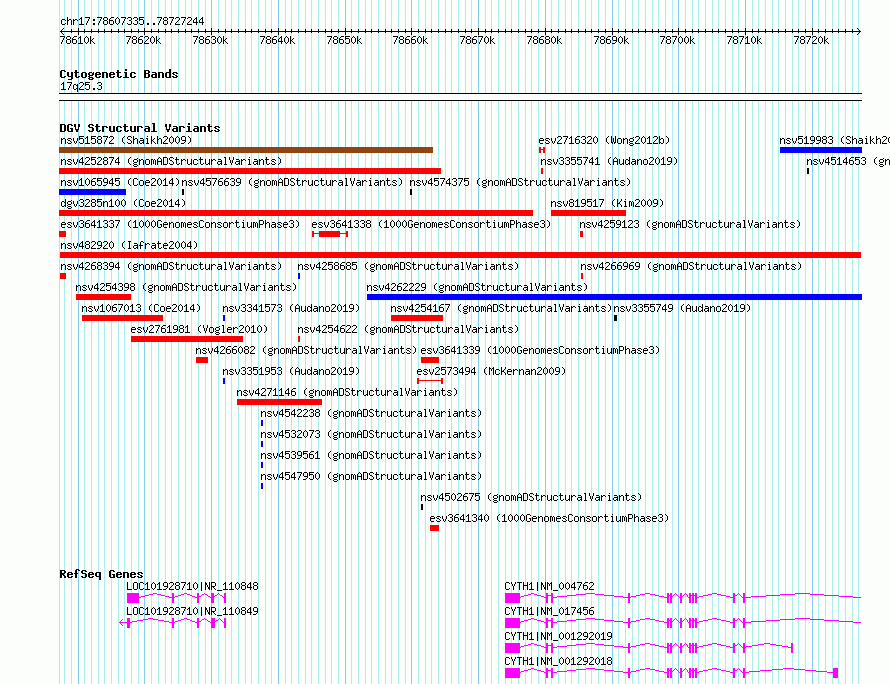 Variant DetailsVariant: nsv482920| Internal ID | 15235649 | | Landmark | | | Location Information | | | Cytoband | 17q25.3 | | Allele length | | Assembly | Allele length | | hg38 | 119910 | | hg19 | 119910 |