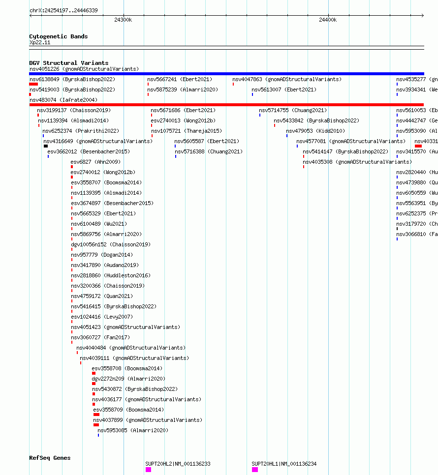 Variant DetailsVariant: nsv483074| Internal ID | 15582187 | | Landmark | | | Location Information | | | Cytoband | Xp22.11 | | Allele length | | Assembly | Allele length | | hg38 | 192143 | | hg19 | 192143 |