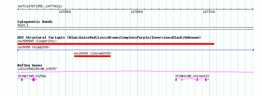 | Known Genes | LOC102546294, SPINK7, SPINK9 |