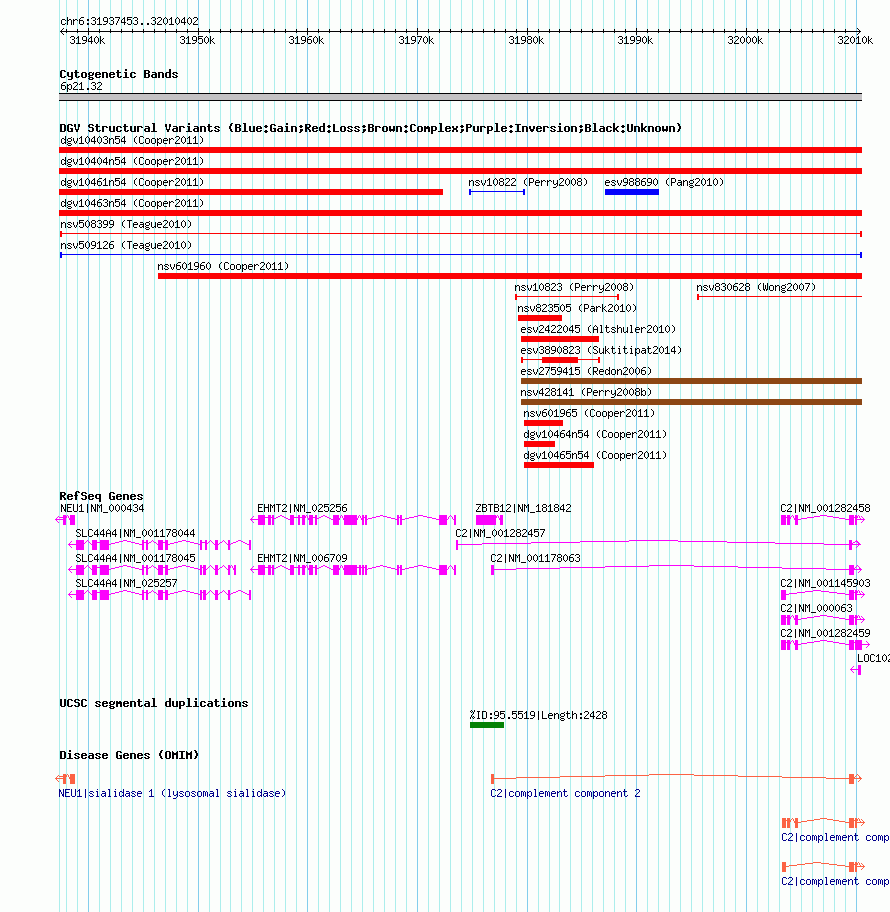 | Known Genes | C2, EHMT2, LOC102060414, NEU1, SLC44A4, ZBTB12 |