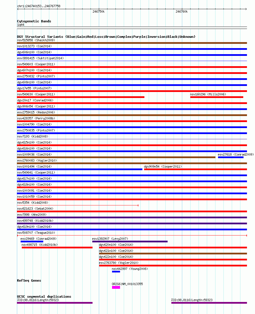 Variant DetailsVariant: nsv508707| Internal ID | 15480383 | | Landmark | | | Location Information | | | Cytoband | 1q44 | | Allele length | | Assembly | Allele length | | hg38 | 27606 | | hg19 | 27606 | | hg18 | 27606 | | hg17 | 27606 |