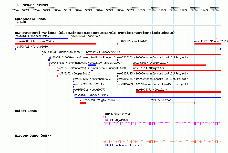 Variant DetailsVariant: nsv508723| Internal ID | 15824750 | | Landmark | | | Location Information | | | Cytoband | 1p36.31 | | Allele length | | Assembly | Allele length | | hg38 | 4329 | | hg19 | 4329 | | hg18 | 4329 | | hg17 | 4329 |