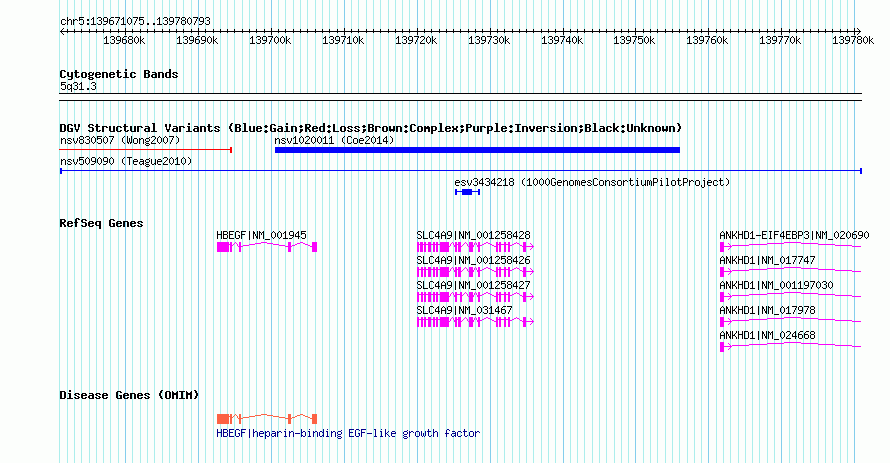 | Known Genes | ANKHD1, ANKHD1-EIF4EBP3, HBEGF, SLC4A9 |
