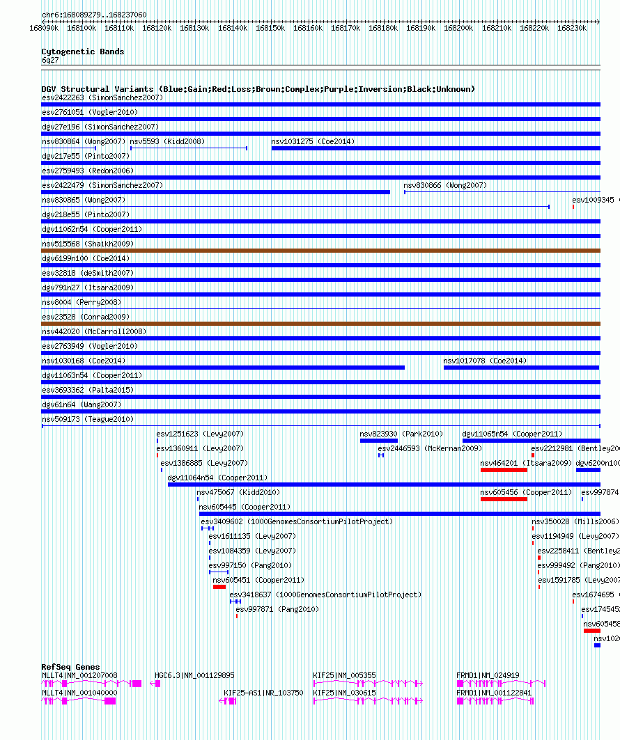 Variant DetailsVariant: nsv509173| Internal ID | 15825199 | | Landmark | | | Location Information | | | Cytoband | 6q27 | | Allele length | | Assembly | Allele length | | hg38 | 3745 | | hg19 | 3745 | | hg18 | 3745 | | hg17 | 3745 |