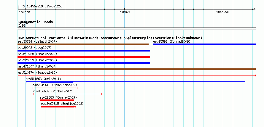 Variant DetailsVariant: nsv510870| Internal ID | 15478366 | | Landmark | | | Location Information | | | Cytoband | Xq28 | | Allele length | | Assembly | Allele length | | hg38 | 24035 | | hg19 | 24035 | | hg18 | 24035 | | hg17 | 24035 |