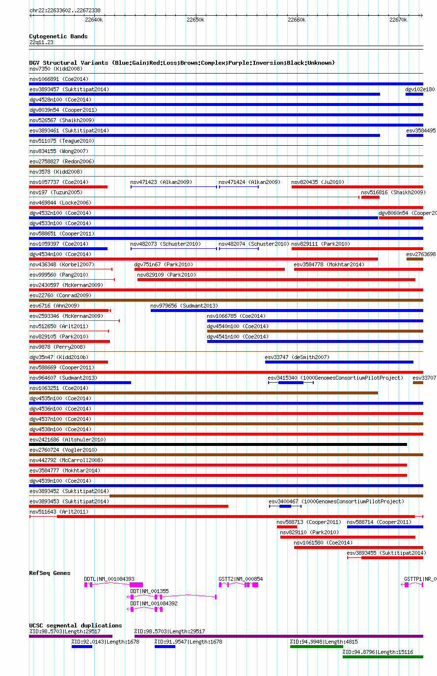 Variant DetailsVariant: nsv511643| Internal ID | 15504382 | | Landmark | | | Location Information | | | Cytoband | 22q11.23 | | Allele length | | Assembly | Allele length | | hg38 | 38730 | | hg19 | 38737 | | hg18 | 38737 |