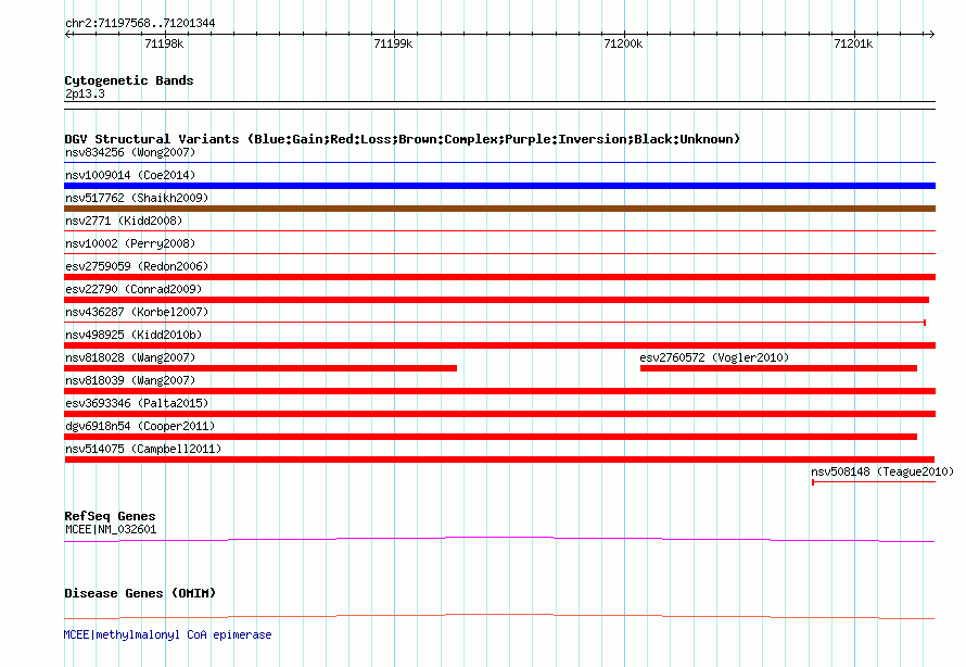 Variant DetailsVariant: nsv514075 | Internal ID | 15812423 | | Landmark | | | Location Information | | | Cytoband | 2p13.3 | | Allele length | | Assembly | Allele length | | hg38 | 3777 | | hg19 | 3777 | | hg18 | 3777 |