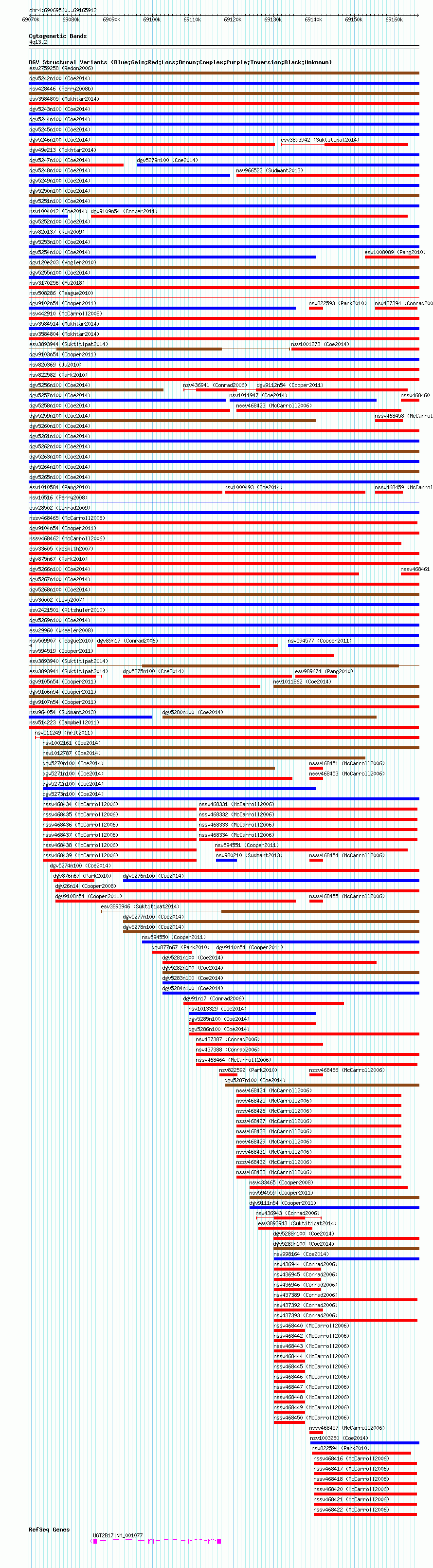 Variant DetailsVariant: nsv514223 | Internal ID | 15812640 | | Landmark | | | Location Information | | | Cytoband | 4q13.2 | | Allele length | | Assembly | Allele length | | hg38 | 96353 | | hg19 | 96353 | | hg18 | 96353 |