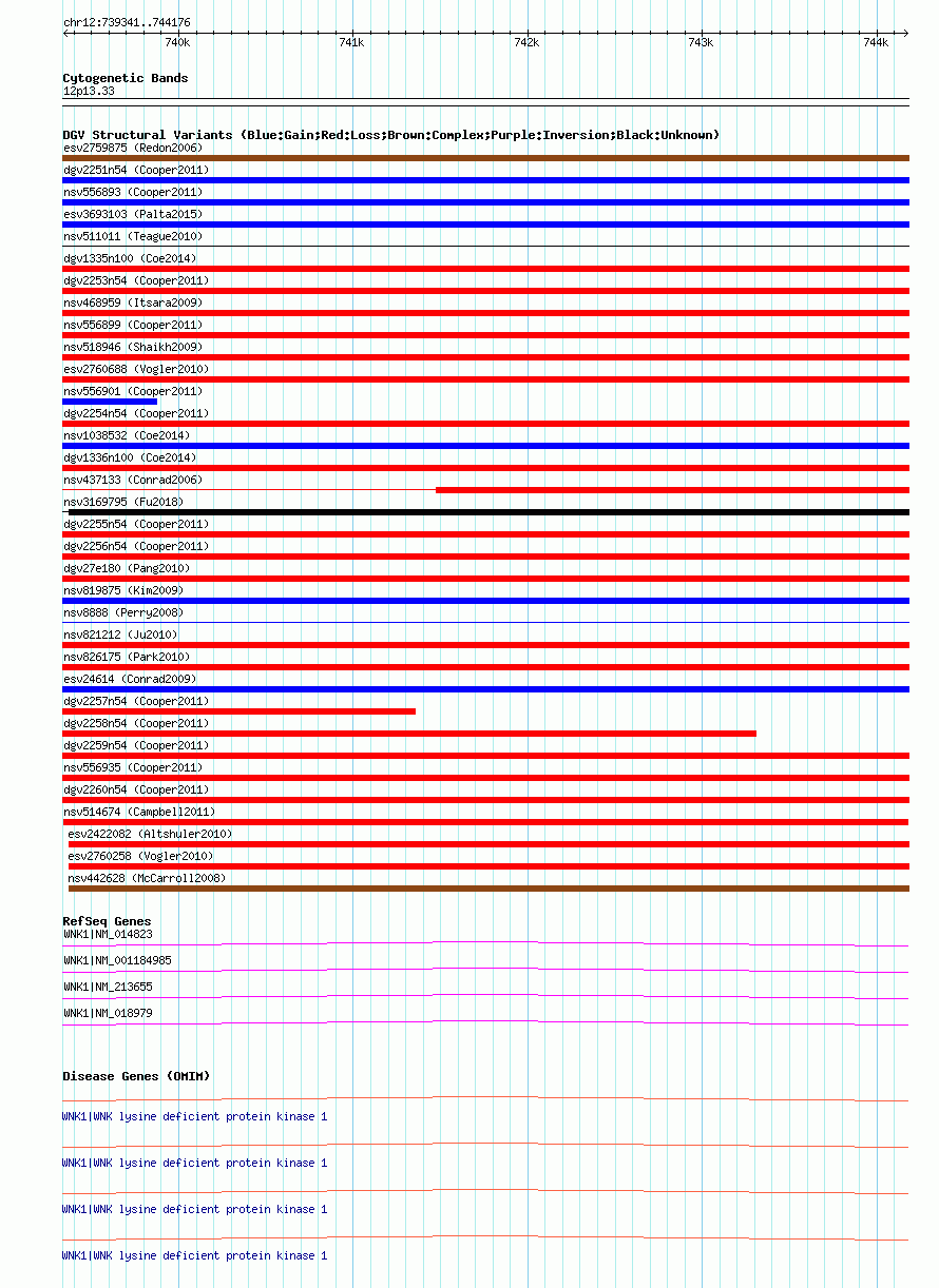 | | Variant Type | CNV loss | | Copy Number | | | Allele State | | | Allele Origin | | | Probe Count | | | Validation Flag | | | Merged Status | M | | Merged Variants | | | Supporting Variants | nssv2795300, nssv2791716, nssv2798352, nssv2790203, nssv2792120, nssv2791627, nssv2798420, nssv2793904, nssv2788922, nssv2797408, nssv2797317, nssv2793631, nssv2789038, nssv2797813, nssv2797674, nssv2791884, nssv2797047, nssv2795555, nssv2792080, nssv2793065, nssv2794375, nssv2792875, nssv2791339, nssv2793284, nssv2791739, nssv2791926, nssv2789677, nssv2789496, nssv2789562, nssv2797247, nssv2790080, nssv2791402, nssv2797889, nssv2789084, nssv2796136, nssv2792745, nssv2796504, nssv2790546, nssv2796333, nssv2795058, nssv2790879, nssv2796538, nssv2794500, nssv2798218, nssv2789778, nssv2789760, nssv2792279, nssv2795578, nssv2788732 | | Samples | NA12717, NA12286, NA11995, NA10851, NA12843, NA12344, NA12045, NA21648, NA12146, NA12832, NA12400, NA12750, NA12155, NA18563, NA12336, NA12802, NA12348, NA11992, NA18611, NA12889, NA12815, NA10855, NA11993, NA18605, NA12343, NA10831, NA12877, NA12718, NA11894, NA12056, NA06989, NA12145, NA10852, NA12778, NA18945, NA18632, NA12716, NA21425, NA21390, NA10840, NA12708, NA12740, NA10860, NA12329, NA11892, NA12890, NA07034, NA10864, NA11832 | | Known Genes | WNK1 | | Method | Oligo aCGH | | Analysis | ADM2 threshold = 5 | | Platform | Agilent Eichler Human CNP 180K v3.0 | | Comments | | | Reference | Campbell_et_al_2011 | | Pubmed ID | 21397061 | | Accession Number(s) | nsv514674