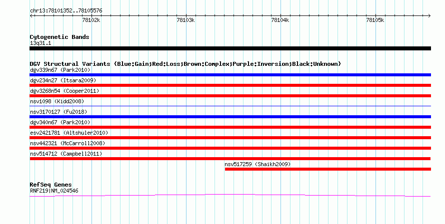 Variant DetailsVariant: nsv514712| Internal ID | 15813071 | | Landmark | | | Location Information | | | Cytoband | 13q31.1 | | Allele length | | Assembly | Allele length | | hg38 | 4225 | | hg19 | 4225 | | hg18 | 4225 |