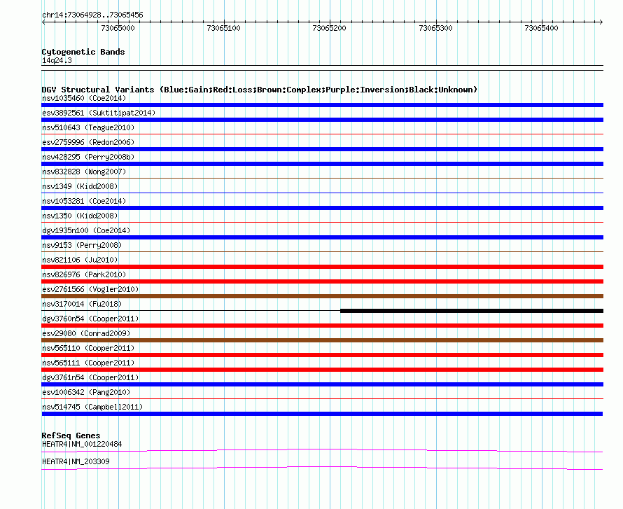 Variant DetailsVariant: nsv514745 | Internal ID | 15813104 | | Landmark | | | Location Information | | | Cytoband | 14q24.3 | | Allele length | | Assembly | Allele length | | hg38 | 529 | | hg19 | 529 | | hg18 | 529 |