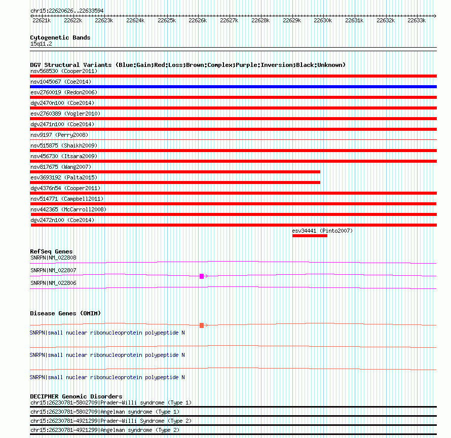 Variant DetailsVariant: nsv514771| Internal ID | 15813130 | | Landmark | | | Location Information | | | Cytoband | 15q11.2 | | Allele length | | Assembly | Allele length | | hg38 | 12969 | | hg19 | 12969 | | hg18 | 12969 |
