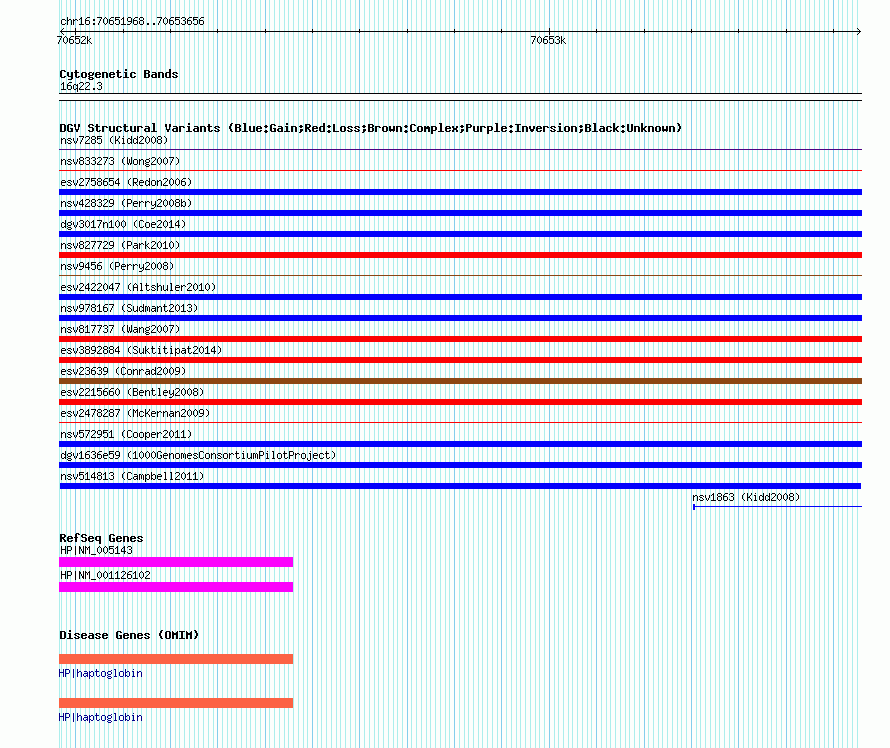 Variant DetailsVariant: nsv514813 | Internal ID | 15813172 | | Landmark | | | Location Information | | | Cytoband | 16q22.2 | | Allele length | | Assembly | Allele length | | hg38 | 1689 | | hg19 | 1689 | | hg18 | 1689 |