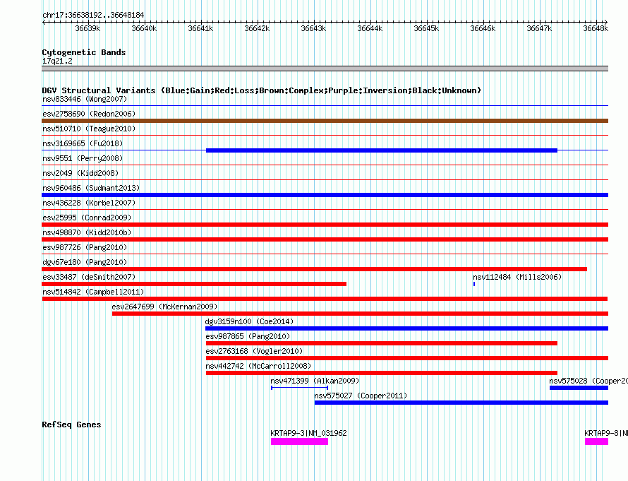 Variant DetailsVariant: nsv514842 | Internal ID | 15813201 | | Landmark | | | Location Information | | | Cytoband | 17q21.2 | | Allele length | | Assembly | Allele length | | hg38 | 9993 | | hg19 | 9993 | | hg18 | 9993 |