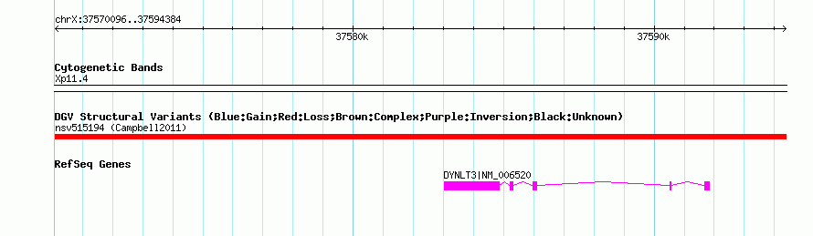 Variant DetailsVariant: nsv515194 | Internal ID | 15813551 | | Landmark | | | Location Information | | | Cytoband | Xp11.4 | | Allele length | | Assembly | Allele length | | hg38 | 24289 | | hg19 | 24289 | | hg18 | 24289 |