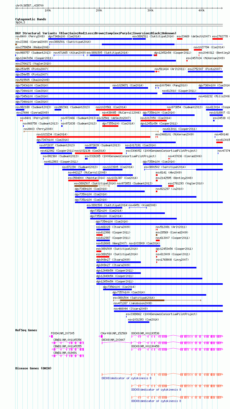Variant DetailsVariant: nsv515505| Internal ID | 15443116 | | Landmark | | | Location Information | | | Cytoband | 9p24.3 | | Allele length | | Assembly | Allele length | | hg38 | 403114 | | hg19 | 403114 | | hg18 | 403114 | | hg17 | 403114 |