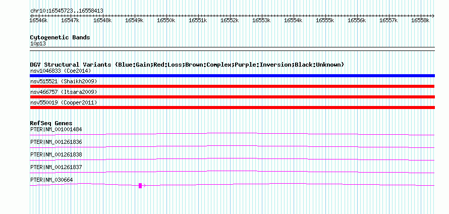 Variant DetailsVariant: nsv515521| Internal ID | 15443132 | | Landmark | | | Location Information | | | Cytoband | 10p13 | | Allele length | | Assembly | Allele length | | hg38 | 12691 | | hg19 | 12691 | | hg18 | 12691 | | hg17 | 12691 |